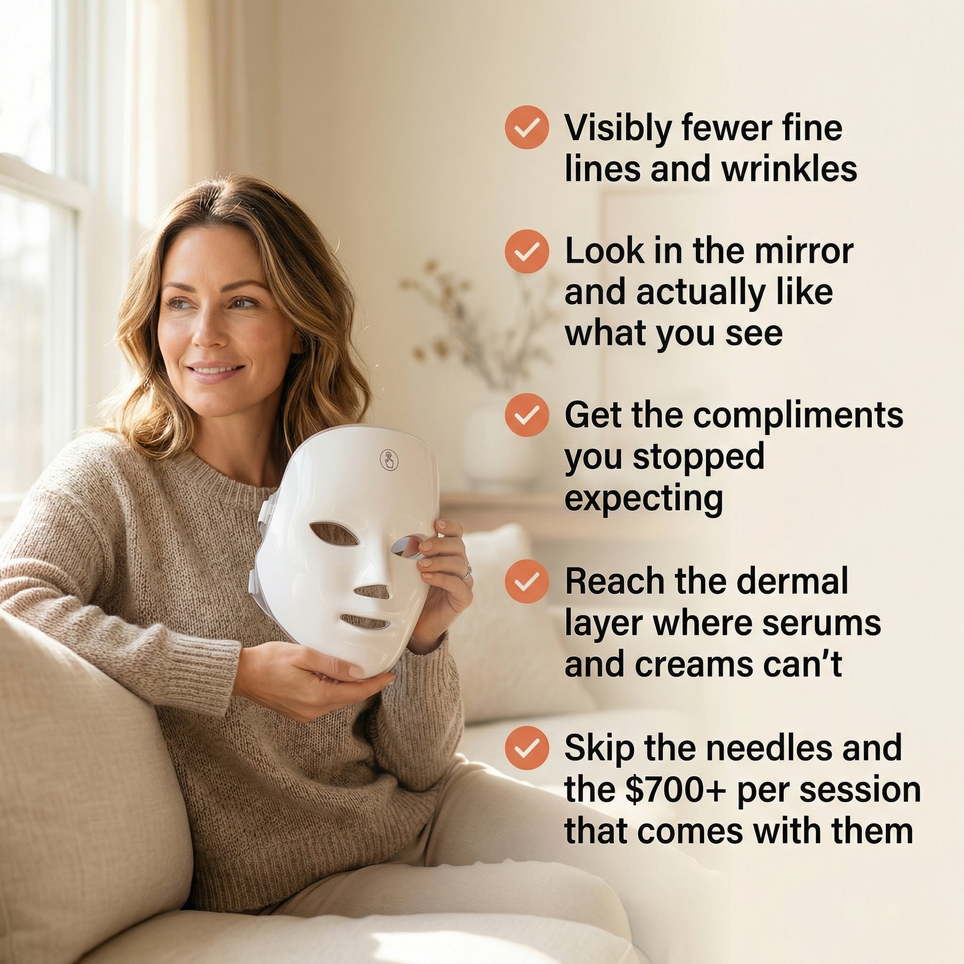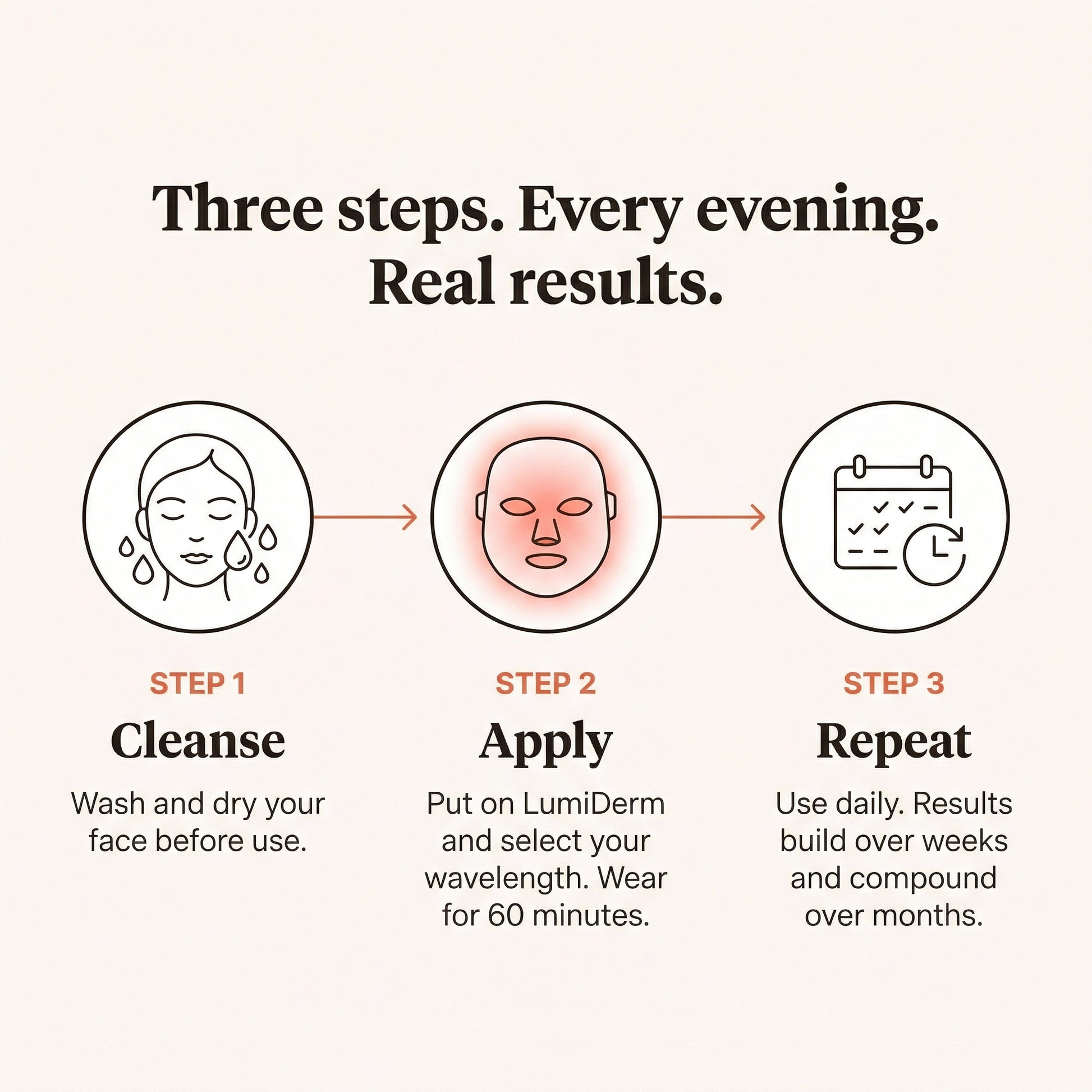 "I almost didn't order because I'd been burned by other LED devices. Around week four I started noticing improvements. By month three two colleagues asked me what I'd changed in my skincare routine. That was the moment I knew."