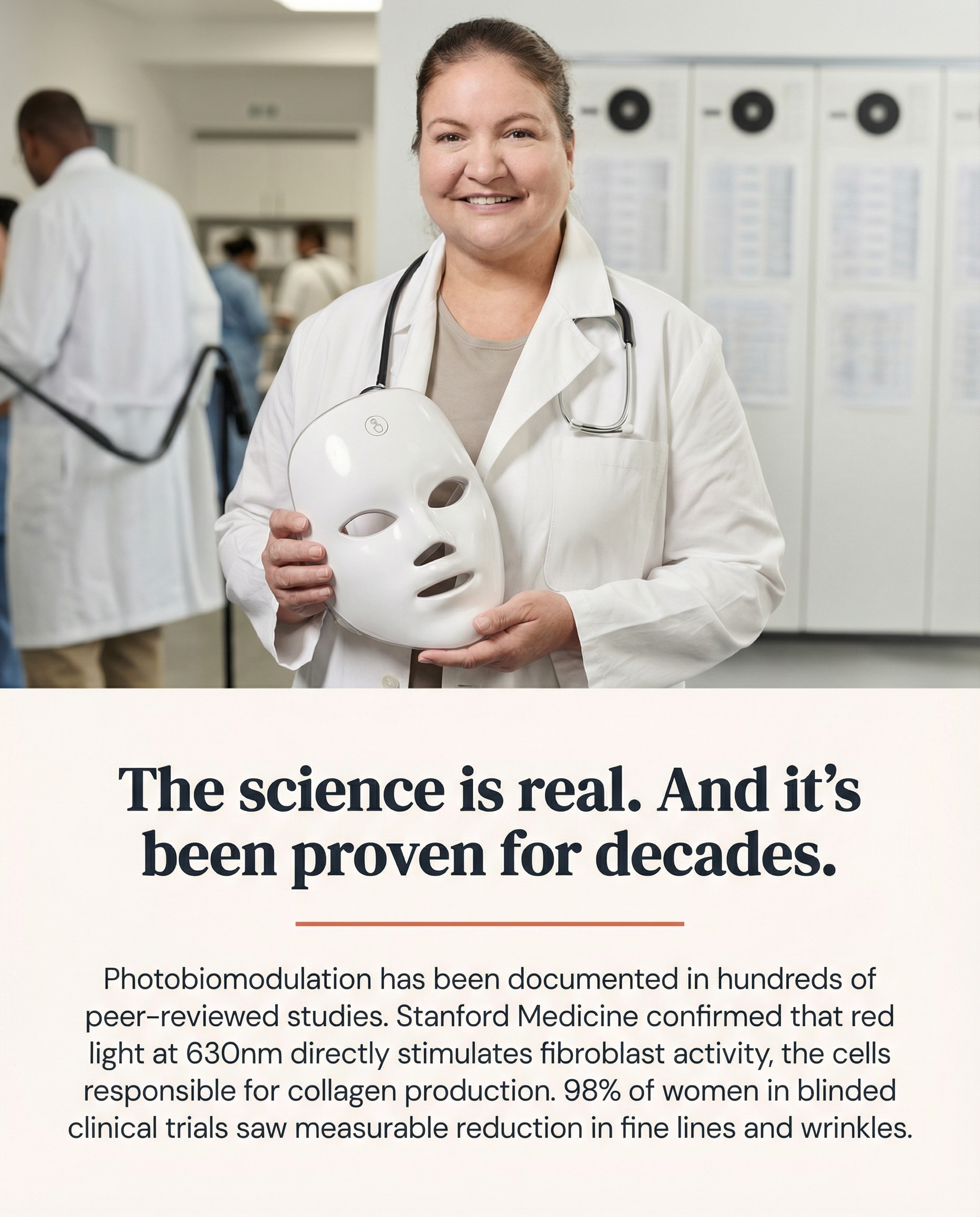 of peer-reviewed studies documented by Stanford Medicine Photobiomodulation and its effects on collagen production have been studied across hundreds of independent trials. The science is not disputed.